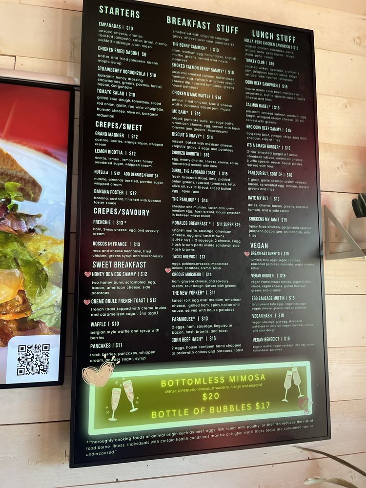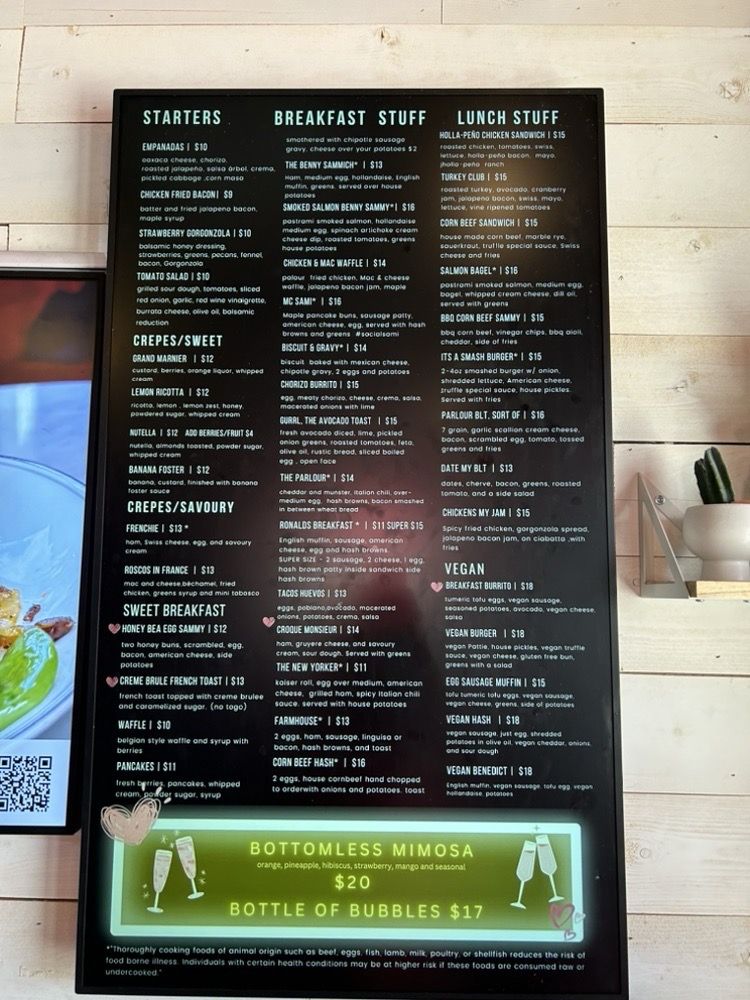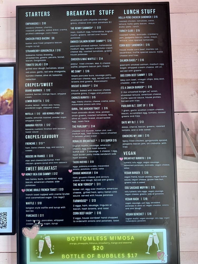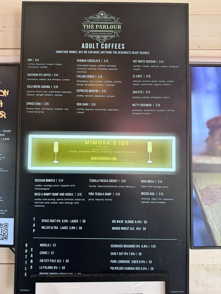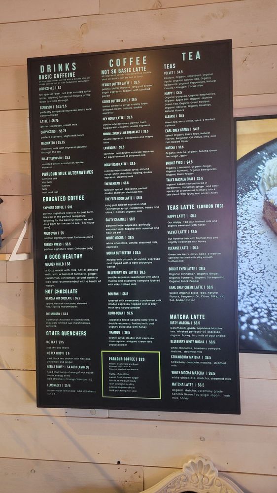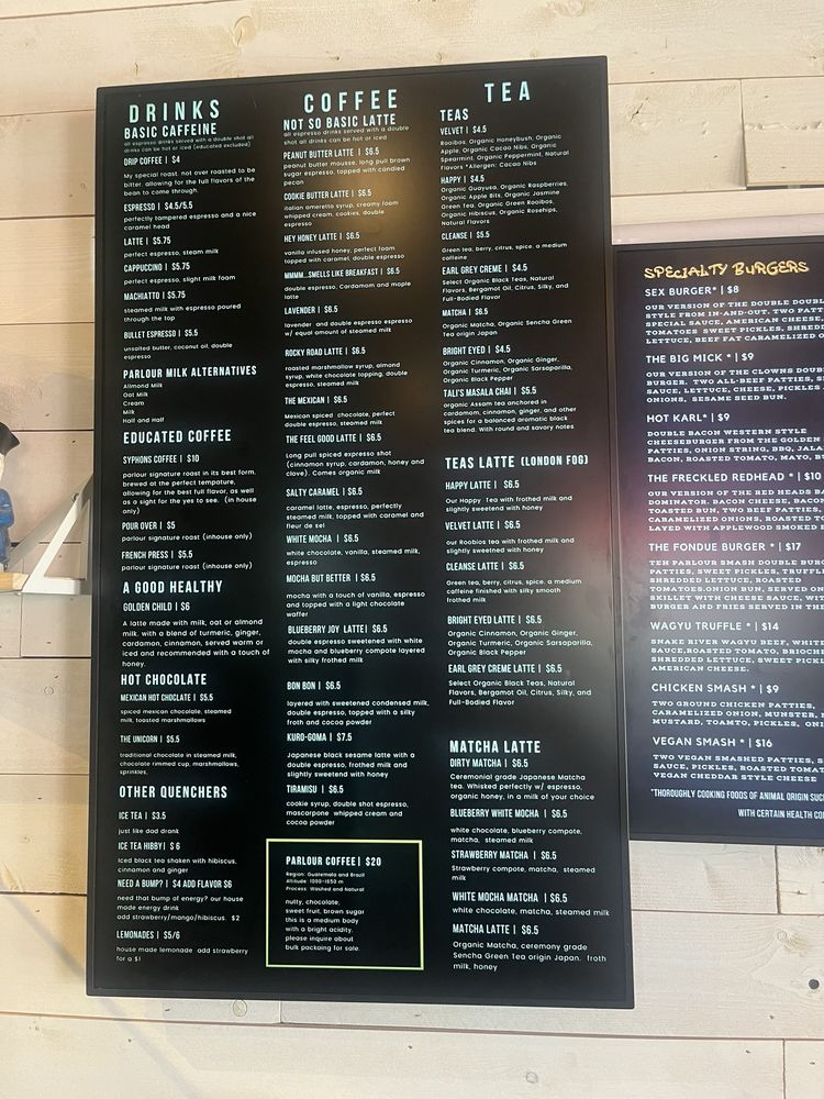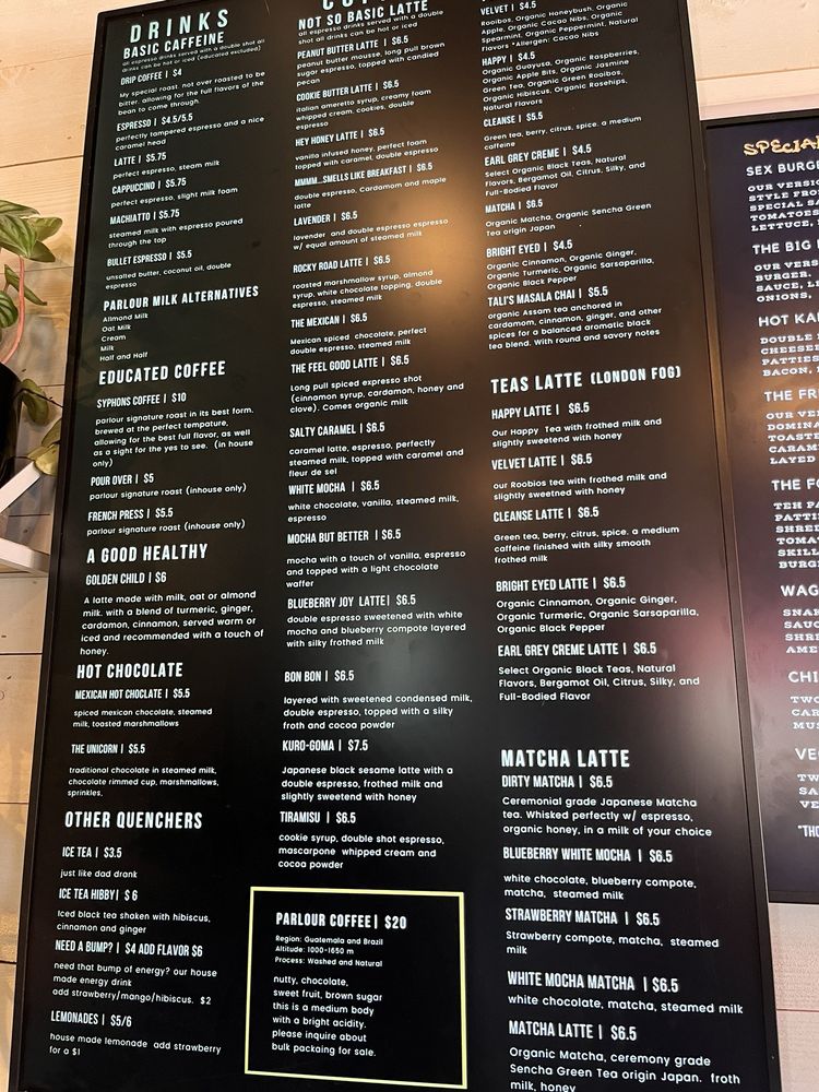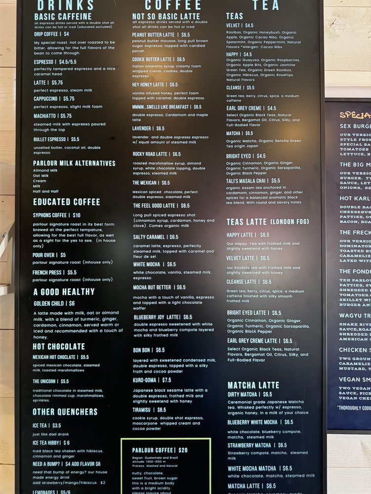 The Parlour Coffee and Cooking Menu (2025 Update)